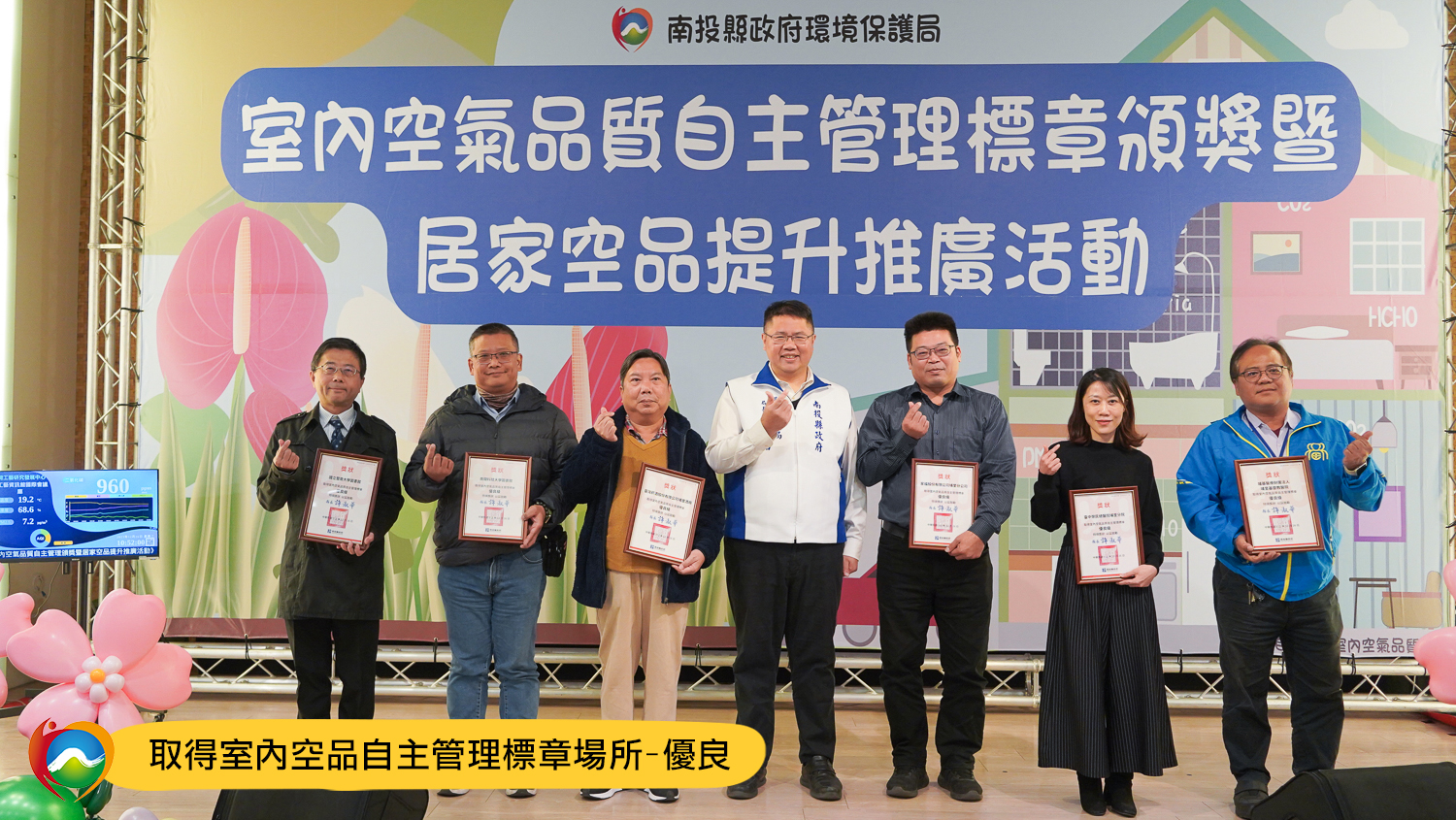 南開科技大學獲得南投縣室內空氣品質自主管理標章-優良標章